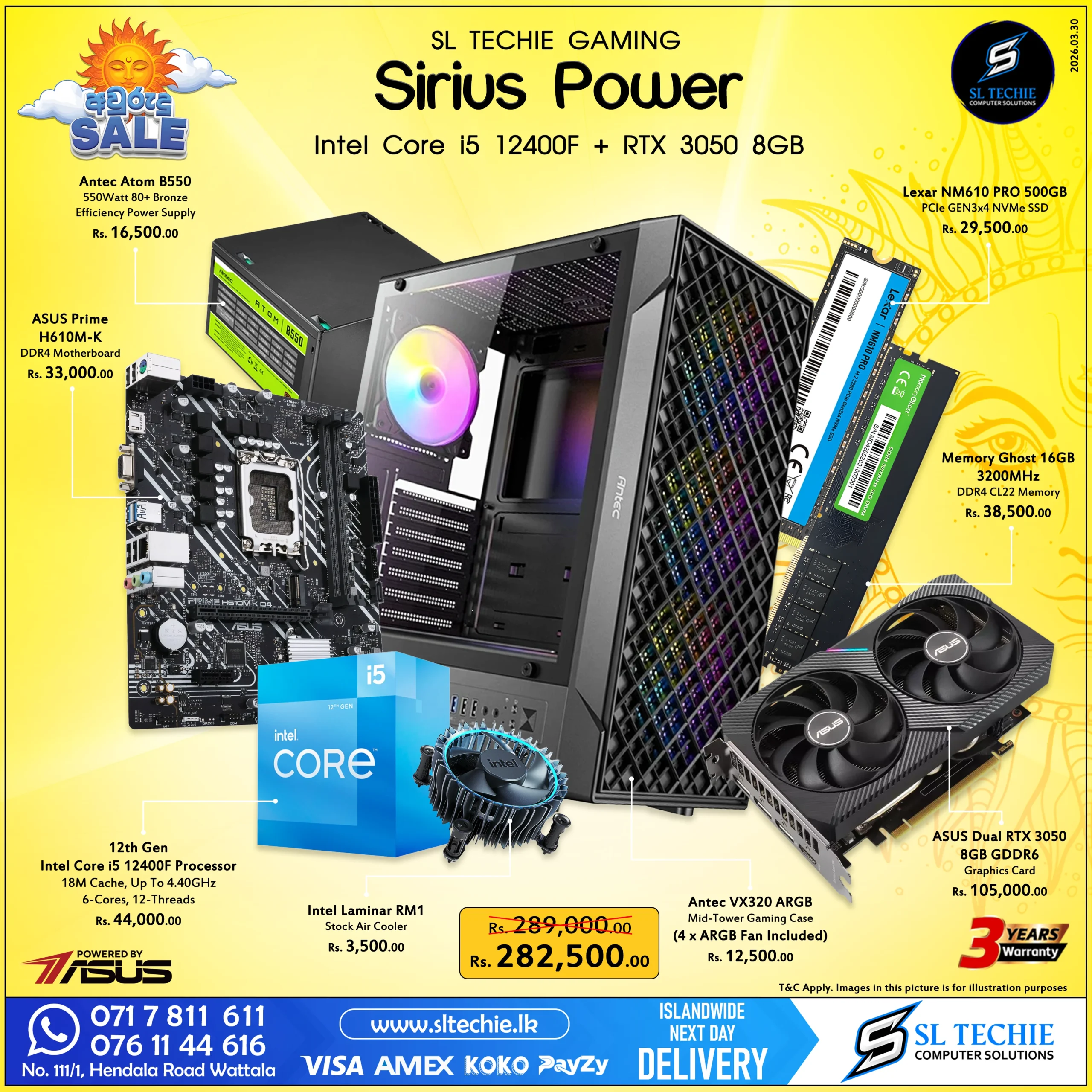 Intel Core i5 12400F + RTX 3050 8GB Brand New Gaming PC – Sirius Power (3Y)