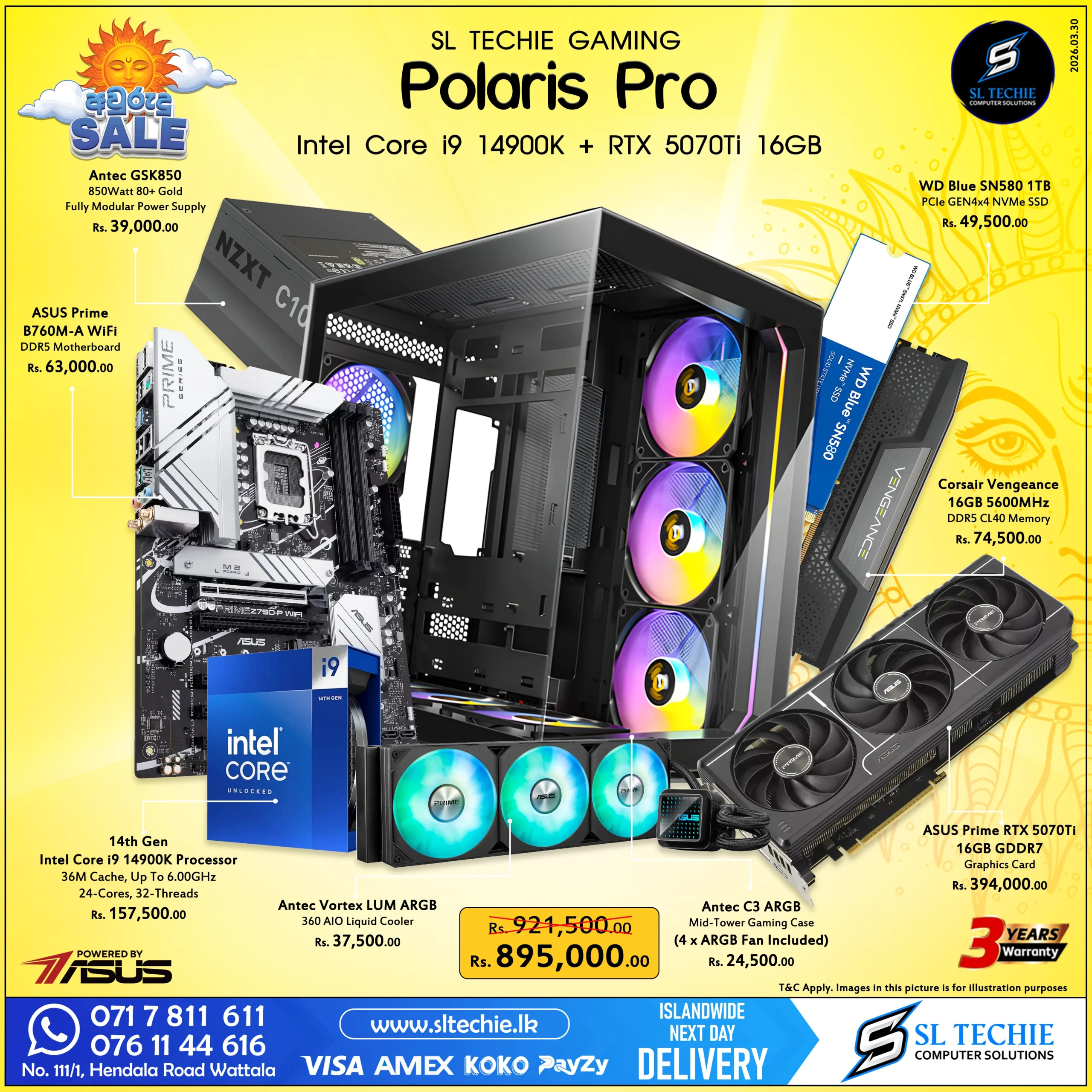 Intel Core i9 14900K + RTX 5070Ti 16GB Brand New Gaming PC – Polaris Pro (3Y)