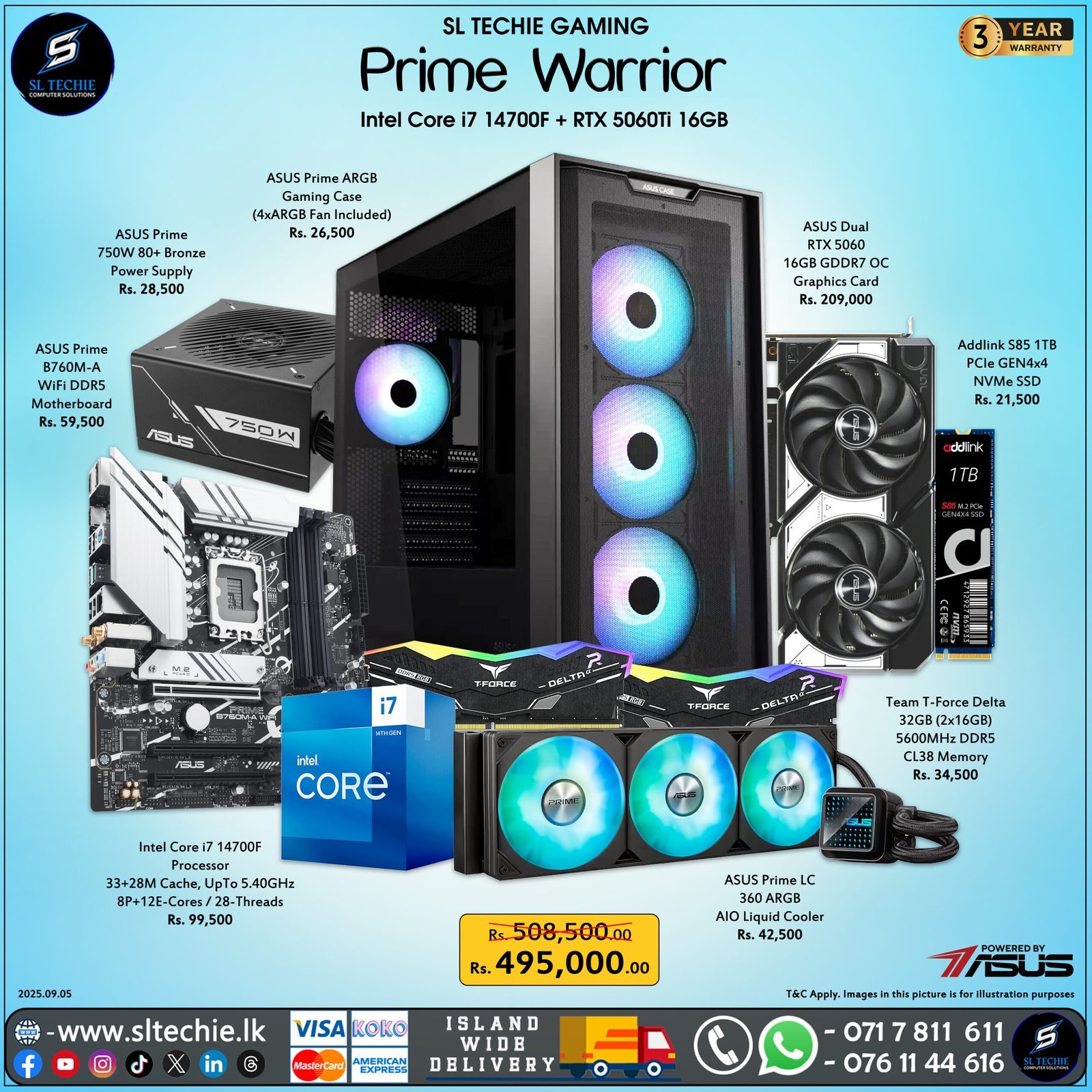 Prime Warrior – Core i7 14700F + RTX 5060Ti 16GB (3Y)